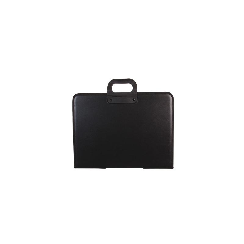 Cartera porta documentos q-connect negra con asa con cremallera din a3 420×297 mm. Cartera fabricada en PVC. Cierre de cremallera. Con asa para facilitar su transporte. Color negro. Formato din a3. Medidas: 465 x 360 x 40 mm.