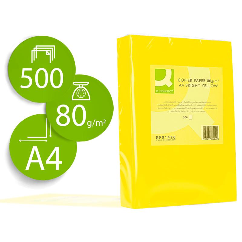 Papel color Q-connect DIN A4 80gr. Amarillo intenso. Paquete de 500 hojas.